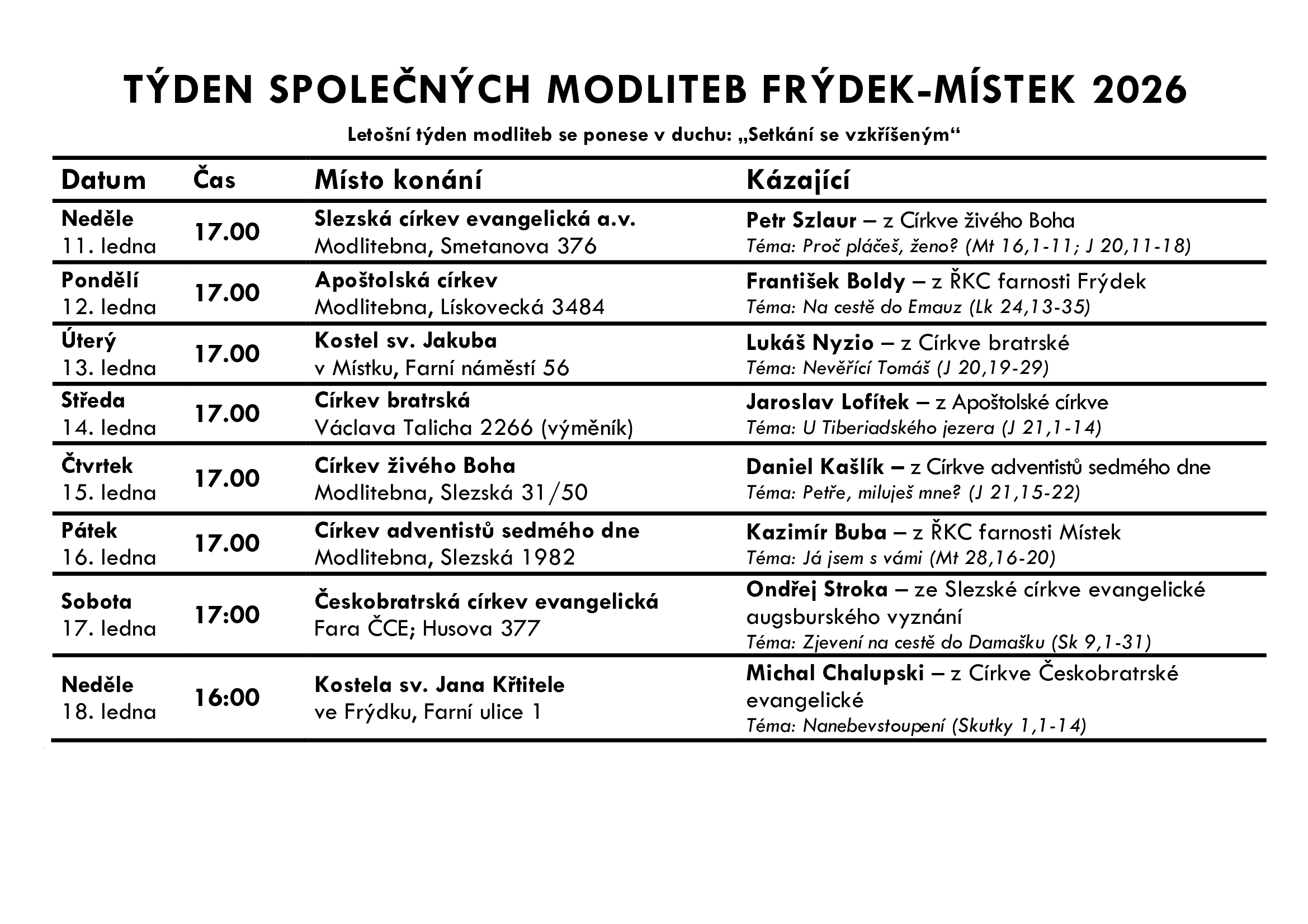 Rozpis bohoslužeb
